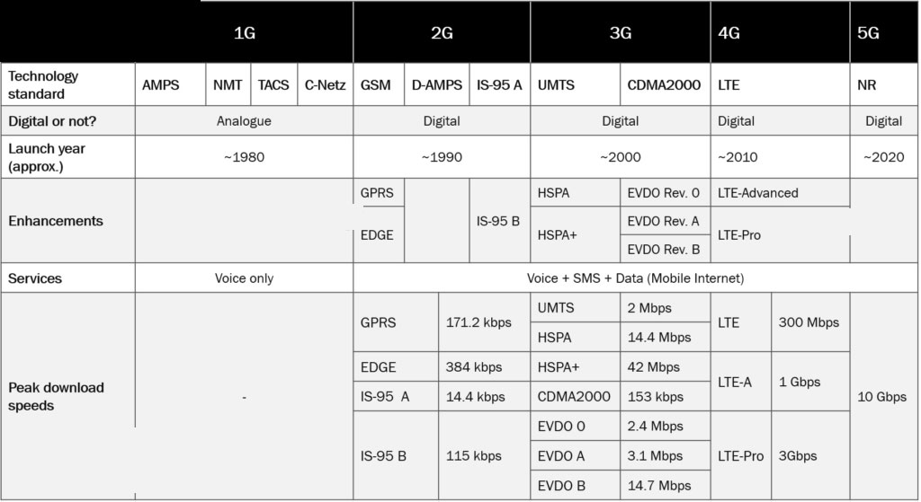 Difference Between 1G 2G 3G 4G 5G mobile technology - 2G 3G 4G Difference